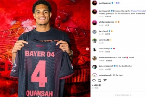宽萨也通过社媒晒出自己手持药厂4号的照片,并配文:“很高兴能够和勒沃库森签约。我已经等不及想要见到球迷并为这家俱乐部付出一切了。”
